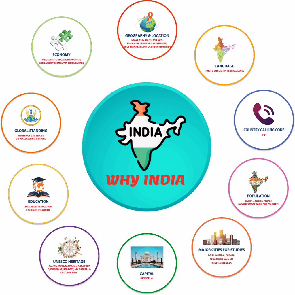 India, with its multicultural environment and world-class education system, attracts international students mainly in engineering, IT, management, and medical fields.